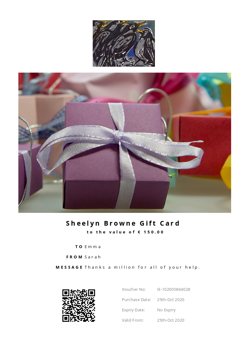 Sheelyn Browne Prints allows you to purchase instantly printable gift vouchers, special offers and tickets using the Voucher Connect platform.